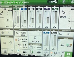 Getriebebezeichnung: AutoPowr,; Ballenmaß (min. Durchmesser / Höhe): 95,; Einhebelsteuergerät (elektronisch),; Heizung,; Radgewichte,; Rundumleuchte,; Wendeschaltung,; Diesel,; ISOBUS,; Zugmaul - automatisch,; höhenverstellbare Anhängevorrichtung,; Ölrücklaufanschluss (drucklos),; Frontkraftheber-Außenbedienung,; Dreipunkt-Außenbedienelement,; Oberlenker hydraulisch (hinten); ________; Nennleistung (97/68/EG) ohne Intelligent Power Management: 250 PS; Max.Leistung (97/68/EG) ohne Intelligent Power Management: 275 PS; Nennleistung (97/68/EG) mit Intelligent Power Managemet: 290 PS; Max.Leistung (97/68/EG) mit Intelligent Power Management: 301 PS; Hubraum: 6788 cm; Kraftstofftank-Volumen: 470/410 L; DEF-Tank-Volumen: 25 L; AutoPowr40 - sutfenloses Getriebe
